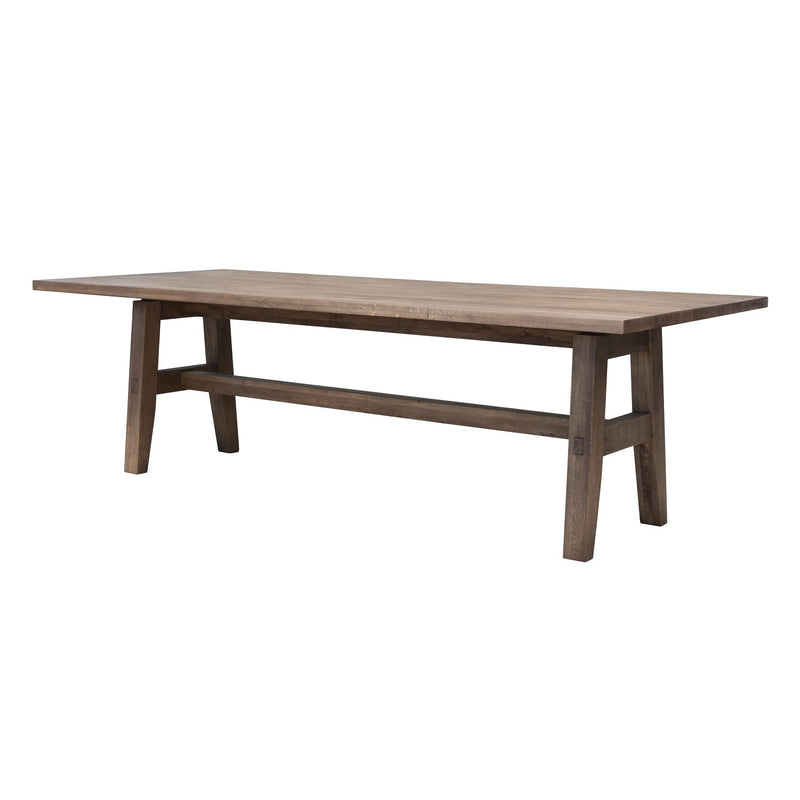 Esszimmertisch aus massiver Eiche mit Eichenholzfüßen und Fußablage